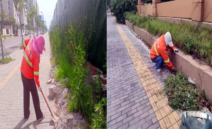 ? ? ? 道路保潔“無(wú)所畏懼”。 黑色柏油馬路上,熱浪滾滾,橙色工作服在強(qiáng)烈陽(yáng)光照耀下顯得格外引人注目。女子班,228班組保潔人員在班長(zhǎng)龔飛、姚功帶領(lǐng)下,肩背除草機(jī),雙手緊握長(zhǎng)長(zhǎng)的操作手柄,高速旋轉(zhuǎn)的打草帶,將雜亂草葉打斷、甩開,不一會(huì),就“收割”上海路生活區(qū)周邊雜草20多處;人工清掃裝運(yùn)施工車輛拋灑石子、泥土30余車,擦洗站臺(tái)座椅30多個(gè),清掏果皮箱200余只,盡心盡職完成突擊保潔任務(wù)。